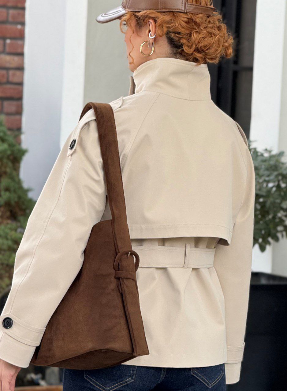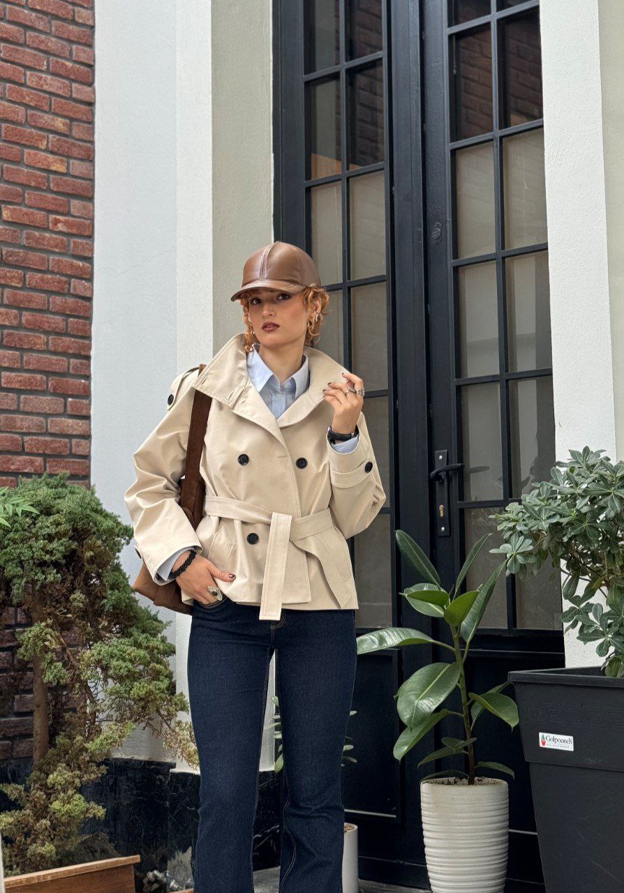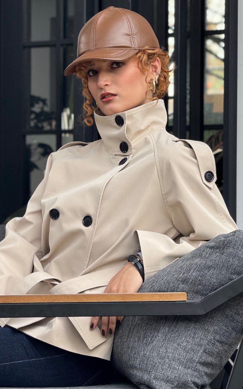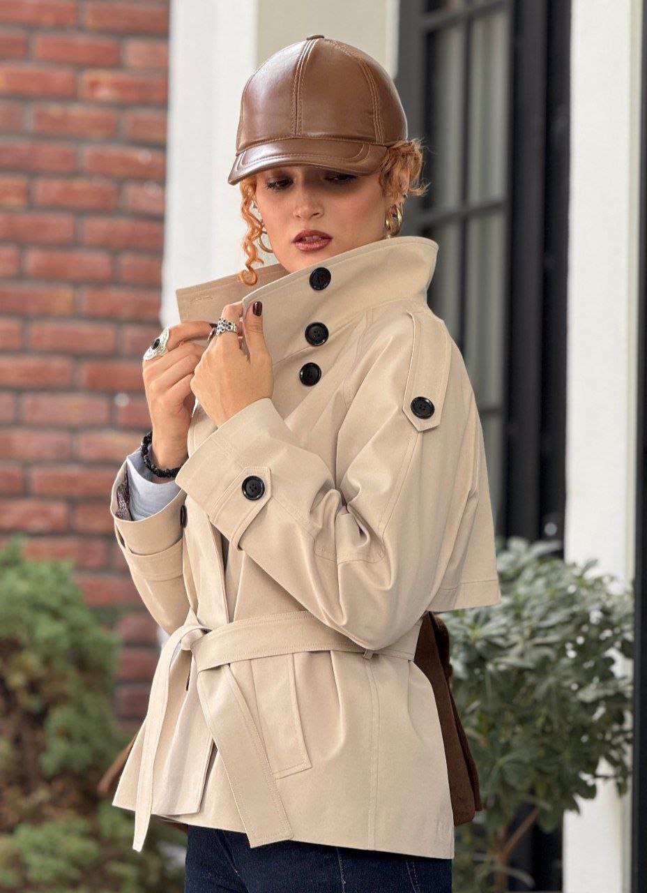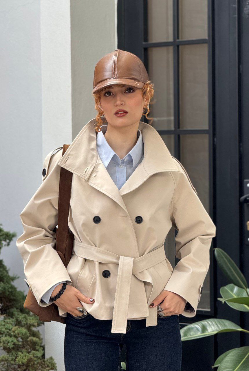 یقه ایستاده با طراحی خاص، کمربند هم جنس، جیب های کاربردی، دکمه درجه یک وارداتی، دوخت حرفه ای